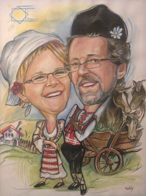 Шарж с размер 20/30 см., за един човек е 90 лв., за двама 100 лв.